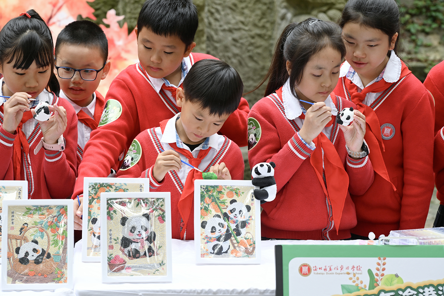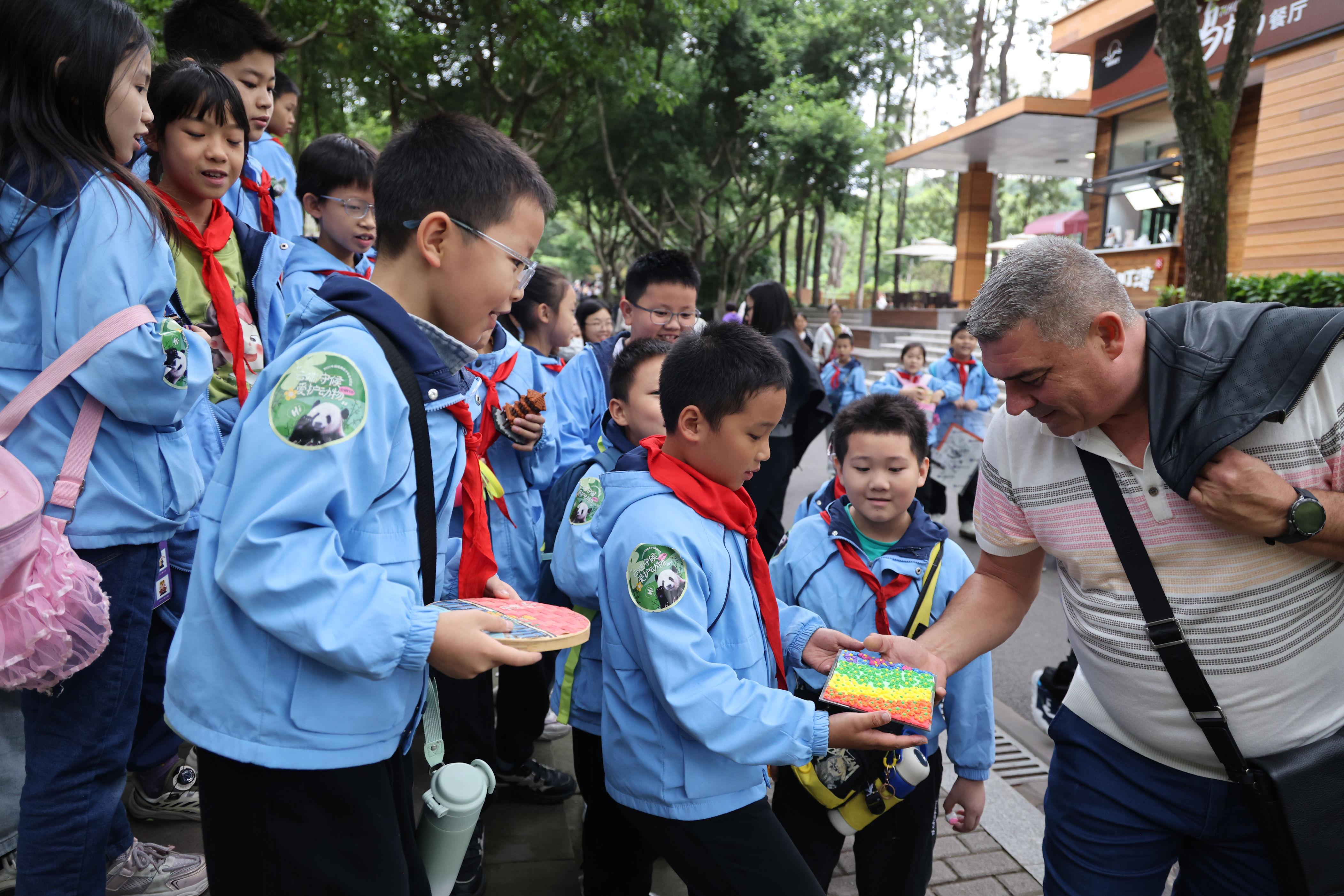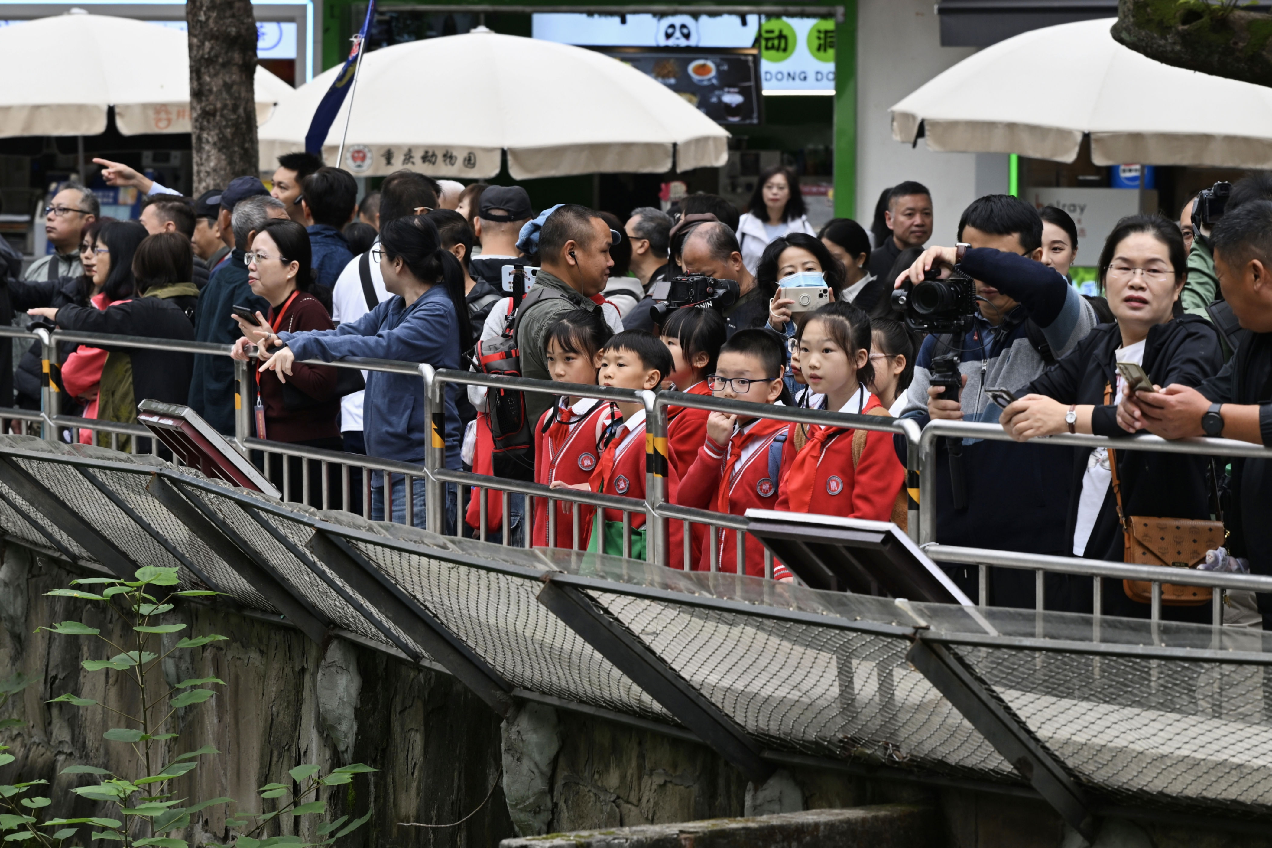 ▲2025年10月24日,重庆动物园,孩子们正在参观熊猫,为制作义卖工艺品做准备。记者 崔力 摄