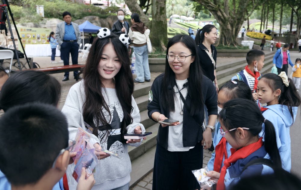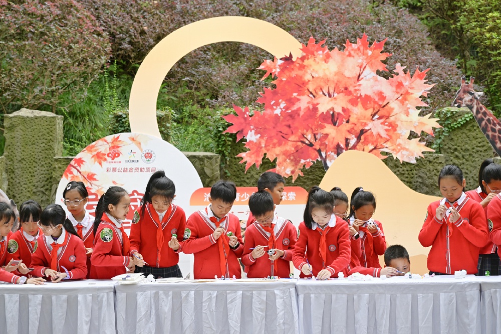 当日,来自重庆市渝北区笃信实验学校和重庆市南岸区江南小学校的小学生们走进动物园,了解熊猫、河马、犀牛的习性与故事,将手中的一元钱、一幅幅手绘作品汇聚起来,通过制作和义卖,参与2025年渝港澳青少年自然探索“云捐赠·一元爱”——“云端守候·爱护动物”公益行动中,将“体验式学习”与“陪伴式公益”深度融合,用赤子之心为“流浪小动物关爱行动”贡献力量。