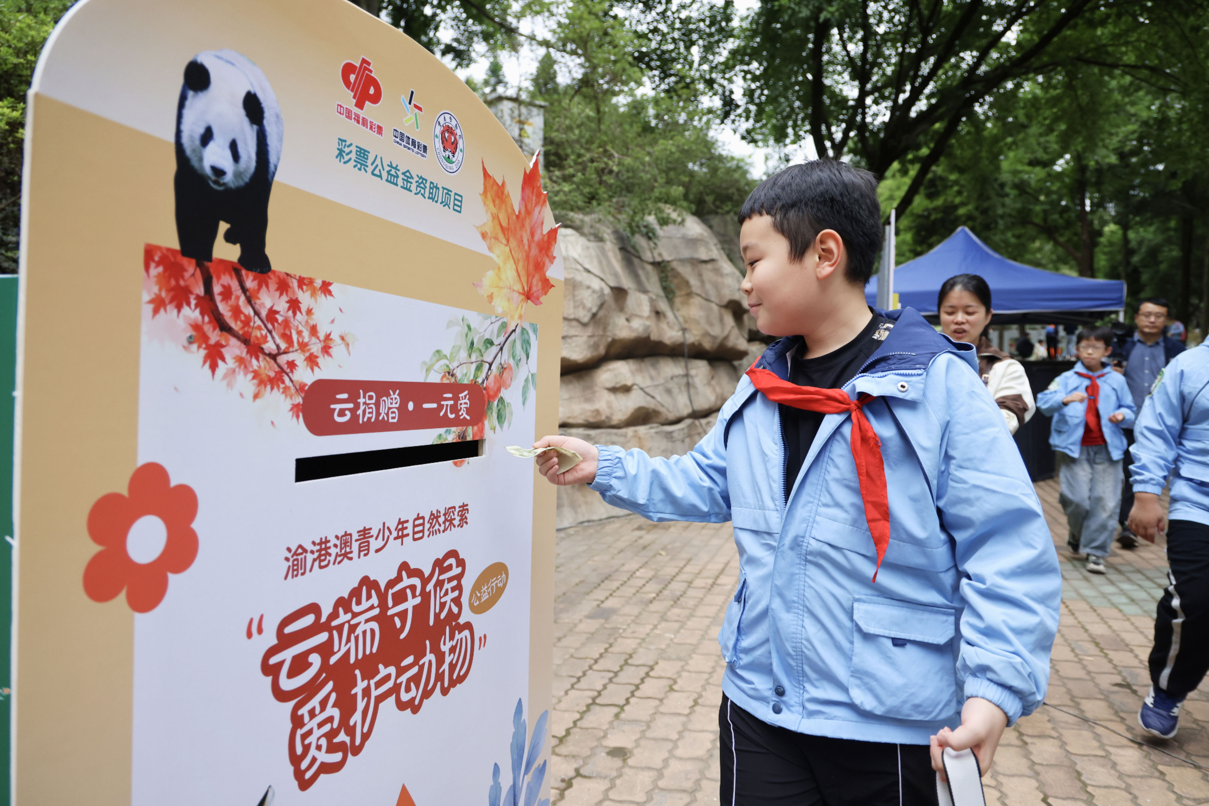 ▲10月24日,重庆动物园,孩子们献出自己的爱心。记者 崔力 摄